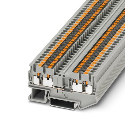 Проходные клеммы, с обесточенной сборной шиной, номинальное напряжение: 500 В, номинальный ток: 20 A, количество точек подсоединения: 4, тип подключения: Зажимы Push-in, Расчетное сечение: 2,5 мм2, cечение: 0,14 мм2 - 4 мм2, тип монтажа: NS 35/7,5, NS 35/15, цвет: cерый