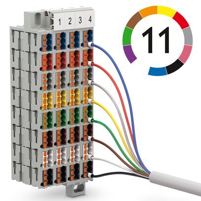 Сотовая клемма, Маркировка от 1 - 80, номинальное напряжение: 500 В, номинальный ток: 17,5 A, тип подключения: Зажимы Push-in, cечение: 0,14 мм2 - 2,5 мм2, монтаж: Настенный монтаж, цвет: cерый, цвет элементов подключения: синий
