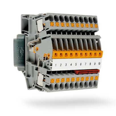 Измерительная клемма с ползунковым размыкателем, номинальное напряжение: 500 В, номинальный ток: 24 A, количество точек подсоединения: 2, тип подключения: Зажимы Push-in, 1. ярус, Расчетное сечение: 4 мм2, cечение: 0,2 мм2 - 6 мм2, тип монтажа: NS 35/7,5, NS 35/15, цвет: синий