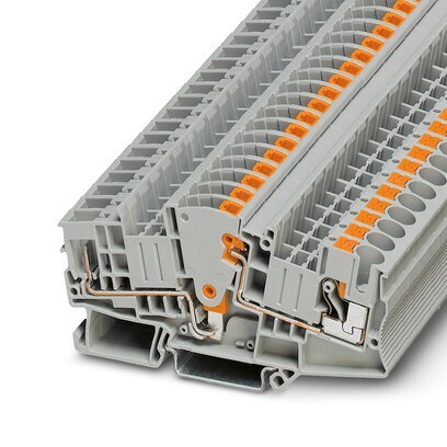 Измерительная клемма с ползунковым размыкателем, номинальное напряжение: 500 В, номинальный ток: 30 A, тип подключения: Зажимы Push-in, 1. ярус, Расчетное сечение: 6 мм2, cечение: 0,5 мм2 - 10 мм2 , цвет: cерый