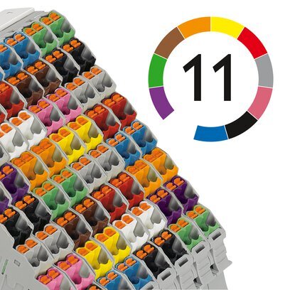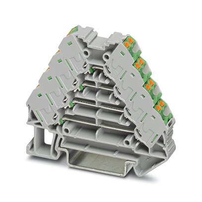 Распределительная панель, номинальное напряжение: 250 В, номинальный ток: 10 A, тип подключения: Зажимы Push-in, 1., 2., 3. и 4-ый ярус, Расчетное сечение: 1,5 мм2, cечение: 0,14 мм2 - 2,5 мм2, монтаж: NS 35/7,5, NS 35/15, цвет: cерый, цвет элементов подключения: зеленый