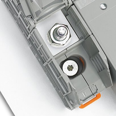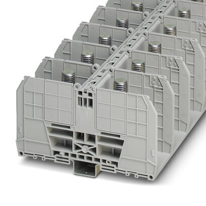 Болтовые клеммы, номинальное напряжение: 1000 В, номинальный ток: 520 A, количество точек подсоединения: 2, полюсов: 1, тип подключения: Болтовые клеммы, 1. ярус, Расчетное сечение: 300 мм2, тип монтажа: NS 35/7,5, NS 35/15, цвет: cерый