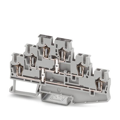 Многоярусный клеммный модуль, с потенциальным разъемом, номинальное напряжение: 500 В, номинальный ток: 20 A, количество точек подсоединения: 6, тип подключения: Пружинный зажим, 1., 2. и 3-ий ярус, Расчетное сечение: 2,5 мм2, cечение: 0,08 мм2 - 4 мм2, тип монтажа: NS 35/7,5, NS 35/15, цвет: cерый