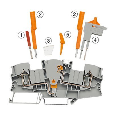 Измерительная клемма с ползунковым размыкателем, номинальное напряжение: 500 В, номинальный ток: 30 A, количество точек подсоединения: 2, тип подключения: Пружинный зажим, Расчетное сечение: 6 мм2, cечение: 0,2 мм2 - 10 мм2, тип монтажа: NS 35/7,5, NS 35/15, цвет: cерый