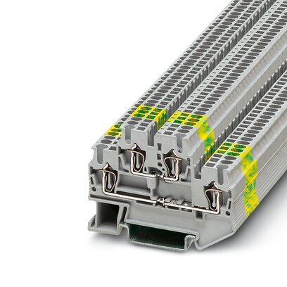 Двухъярусная заземляющая клемма, количество точек подсоединения: 4, тип подключения: Пружинный зажим, 1. и 2-ий ярус, cечение: 0,08 мм2 - 1,5 мм2, тип монтажа: NS 35/7,5, NS 35/15, цвет: желто-зел.