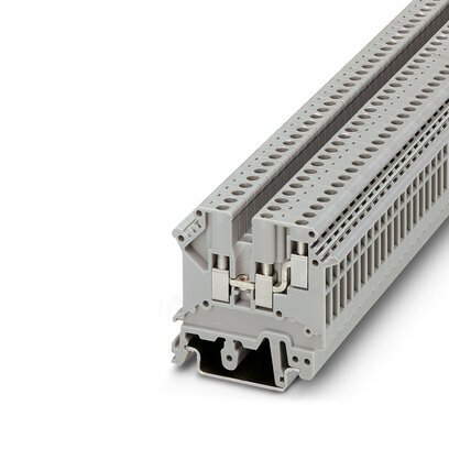 1-ярусный клеммный блок с винтовыми зажимами, с односторонним расположением сдвоенных контактов, сечение: 0,2 - 2,5 мм2, AWG: 30 - 12, ширина: 5,2 мм, цвет: серый