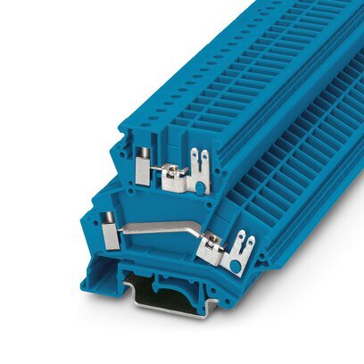 Проходные клеммы, номинальное напряжение: 400 В, номинальный ток: 20 A, 1. или 2-ий ярус, подключение слева, тип подключения: Винтовые зажимы, Расчетное сечение: 4 мм2, cечение: 0,2 мм2 - 4 мм2, тип подключения: Подкл. плоского штекера, монтаж: NS 35/7,5, NS 35/15, NS 32, цвет: синий