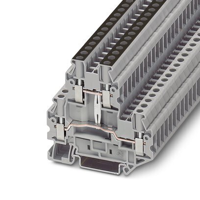 Двухъярусные клеммы, с потенциальным разъемом, номинальное напряжение: 800 В, номинальный ток: 30 A, тип подключения: Винтовые зажимы, Расчетное сечение: 4 мм2, cечение: 0,14 мм2 - 6 мм2, тип монтажа: NS 35/7,5, NS 35/15, цвет: cерый