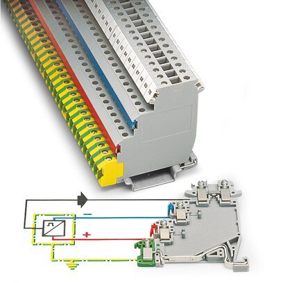 Заземляющие клеммы для выполнения проводки в зданиях, Ток и напряжение определяются типом вставляемого компонента., номинальное напряжение: 250 В, номинальный ток: 24 A, тип подключения: Винтовые зажимы, 2- , 3- и 4-ый ярус, Расчетное сечение: 2,5 мм2, cечение: 0,2 мм2 - 4 мм2, тип подключения: Винтовые зажимы, Расчетное сечение: 1,5 мм2, cечение: 0,2 мм2 - 4 мм2, тип монтажа: NS 35/7,5, NS 35/15, цвет: cерый